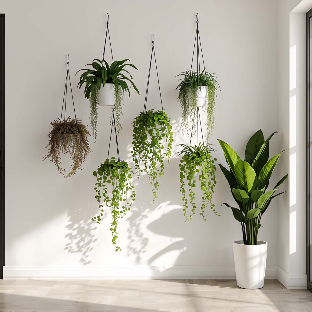 - Wall-mounted planters at varying heights