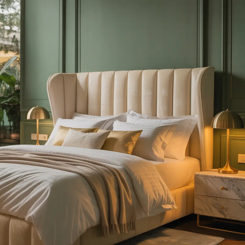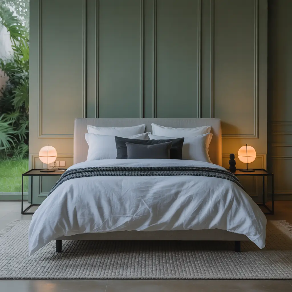 I recently saw a bedroom with floor-to-ceiling vertical panels in matte hunter green, and it literally stopped me in my tracks. The panels created this rhythm across the wall that made the entire room feel taller and more sophisticated. Pair this with modern furniture – think clean lines, metal accents, maybe some acrylic pieces – and you’ve got a bedroom that belongs in an architecture magazine.