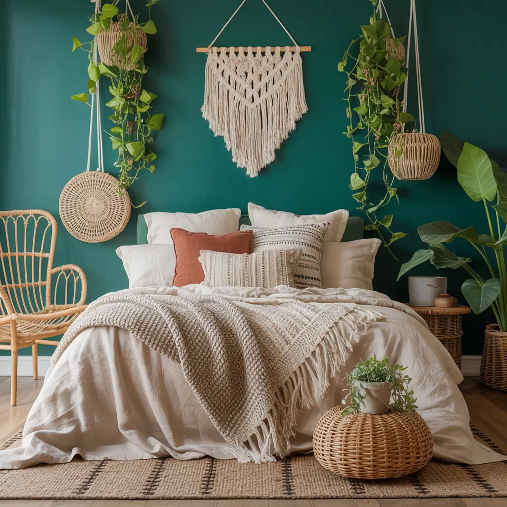 Boho style gives you permission to mix patterns, but with hunter green as your base, you need strategy. Stick to patterns that include touches of green to tie everything together. Vintage Turkish rugs with green accents, throw pillows with green embroidery, or curtains with subtle green patterns all work beautifully.