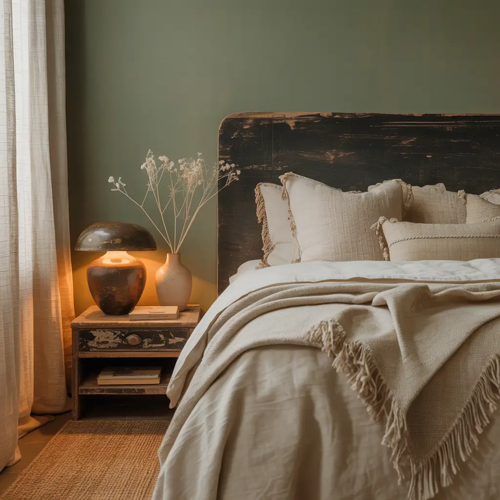 What I love about this combo is its versatility. You can easily switch up your green accents seasonally or when you get bored. Swap out pillows, change your throw blanket, and boom – fresh bedroom without repainting anything.