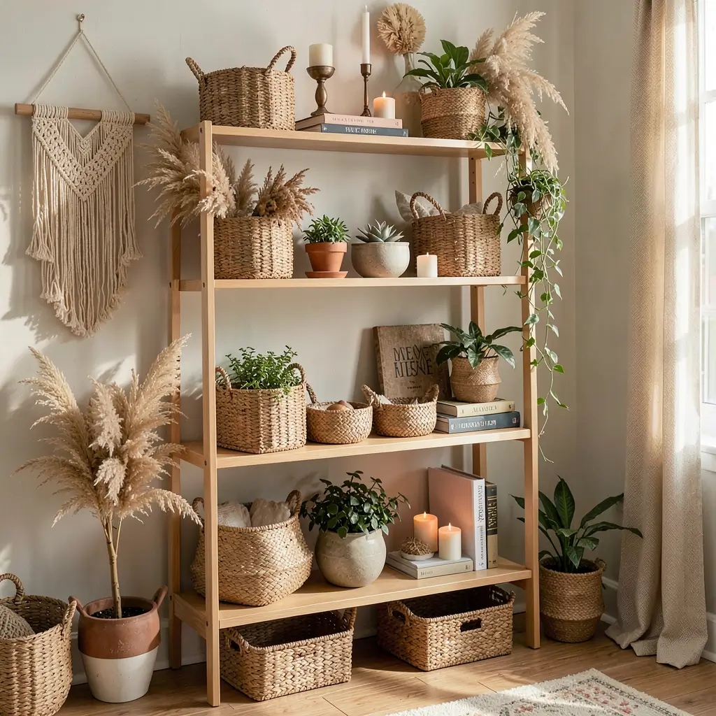 Boho style is all about layering textures, incorporating natural elements, and creating an collected-over-time feel. IKEA shelves provide the perfect foundation for this aesthetic.