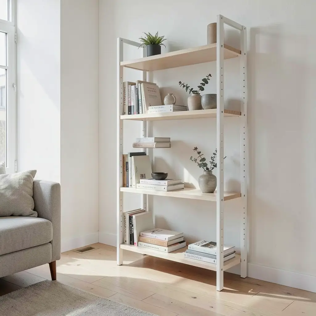 White IKEA bookshelves like the Billy or Hemnes series offer the perfect backdrop for minimalist styling. The key is treating each shelf as its own composition. I like to think of it as creating little vignettes that work together as a whole.