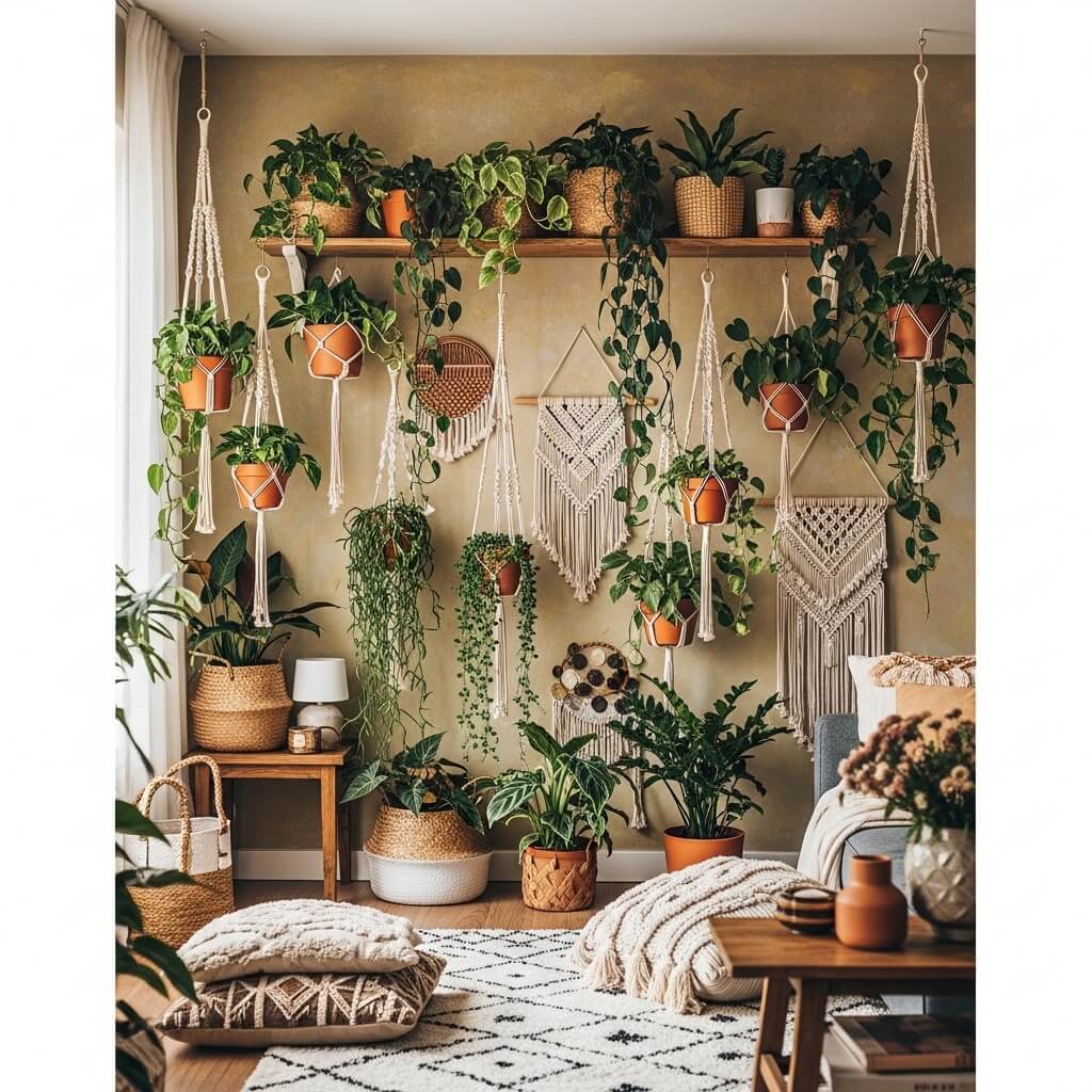 Boho style and plants go together like coffee and Monday mornings – they just make sense. If your aesthetic leans toward eclectic, textured, and slightly chaotic in the best possible way, a boho plant wall might be your calling.