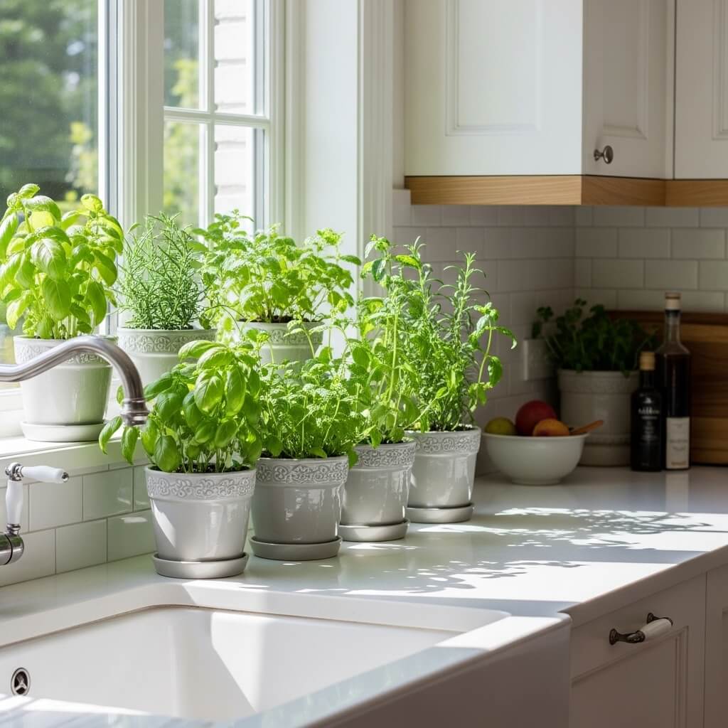 Now we’re talking practical! Kitchen herb gardens are probably my favorite type of indoor gardening because you get to eat the results. There’s something deeply satisfying about snipping fresh basil for your pasta or grabbing mint for your cocktail (or mojito – no judgment here).