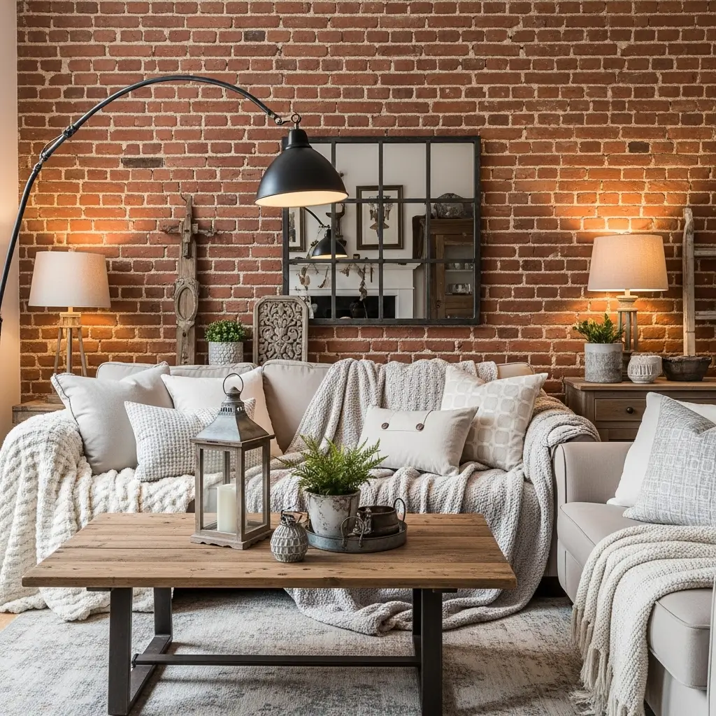 The magic happens when you style exposed brick with carefully chosen farmhouse elements. Too much industrial and your living room feels like a loft conversion. Too much farmhouse and you miss the urban edge. I lean about 60/40 farmhouse to industrial.