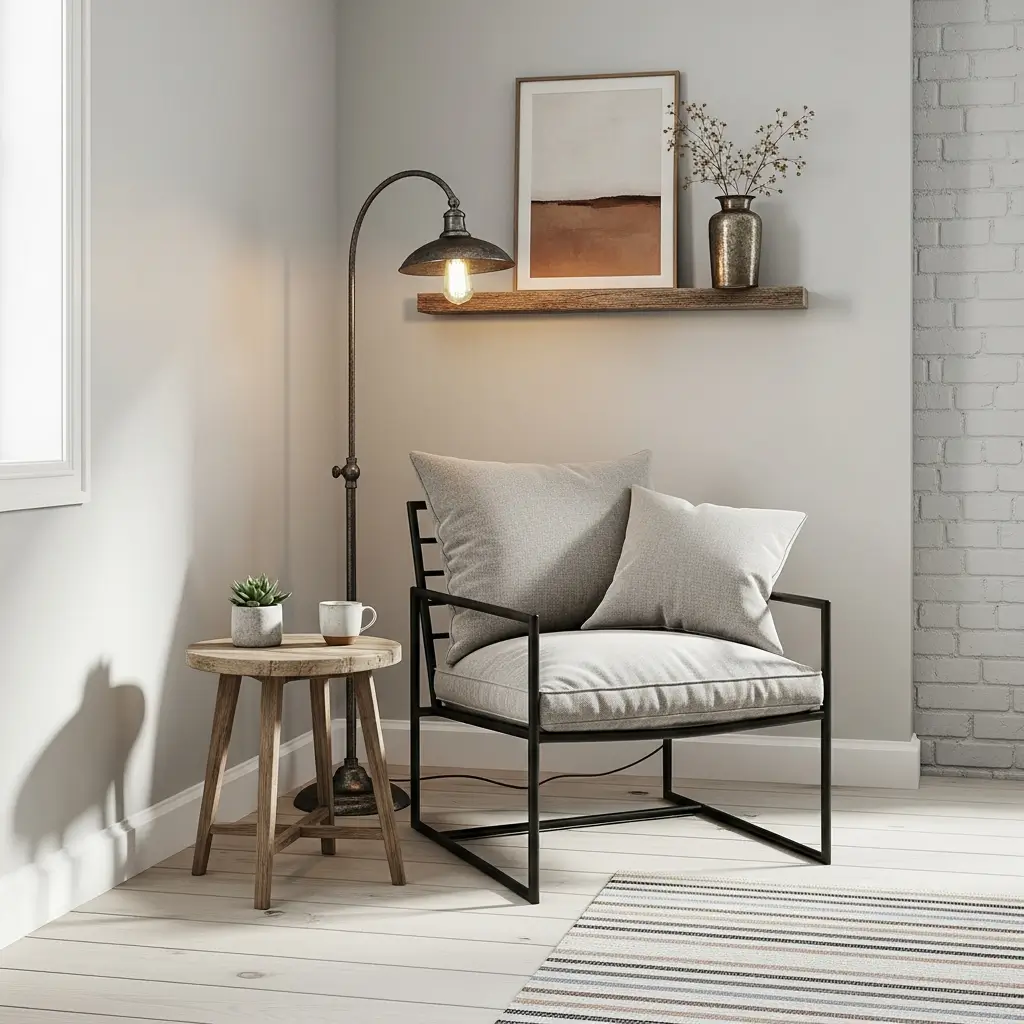 What transformed my corner from empty to amazing? The right scale and placement. Everything needs to be substantial enough to hold its own in the space. Delicate pieces disappear in industrial farmhouse settings – you need furniture with presence.