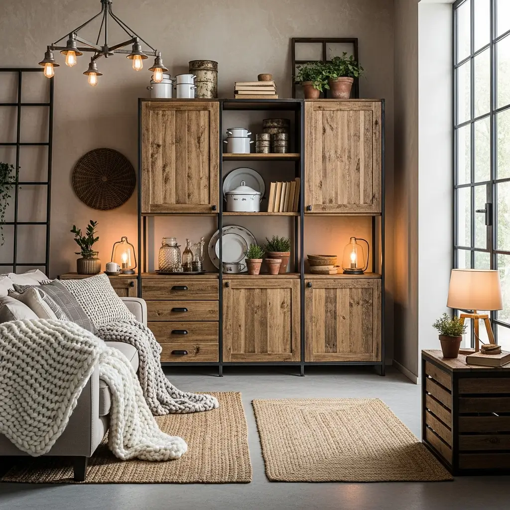 The key to nailing this look? Balance your materials carefully. Too much metal feels cold and warehouse-y. Too much wood loses that industrial edge. I went with 70% wood planks, 30% metal accents through shelving brackets and decorative elements.