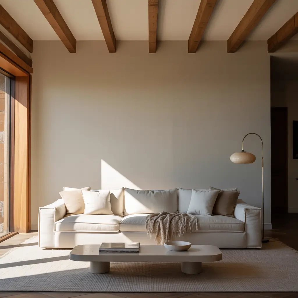 Wood species choice determines the entire vibe. Dark walnut beams create drama, reclaimed barn wood adds rustic authenticity, and painted white beams provide subtle texture without heavy visual weight. The beauty lies in customization – your beams can match existing woodwork or create deliberate contrast.