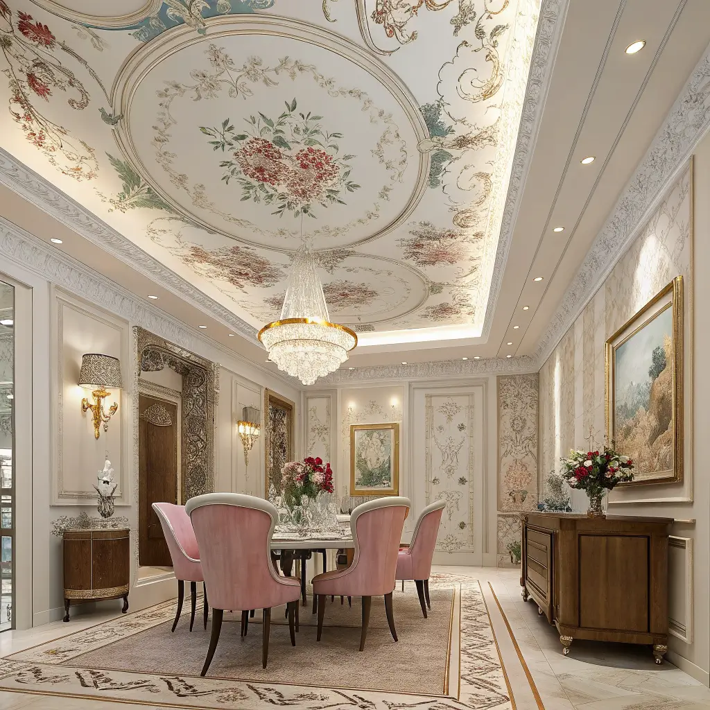 The style works broader than expected. Floral ceilings complement both traditional and surprisingly modern spaces depending on execution and color choices. FYI, this isn’t just for grandma’s parlor anymore.