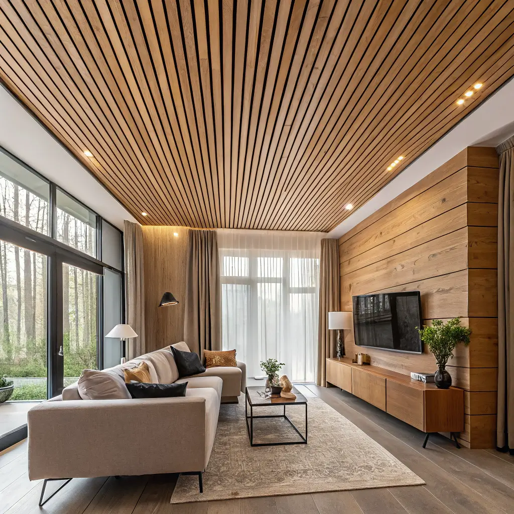 Wood slats on the ceiling might sound rustic, but trust me – when done right, this look is pure modern sophistication. I’m talking clean lines, consistent spacing, and that gorgeous natural texture that makes any room feel instantly warmer and more expensive.