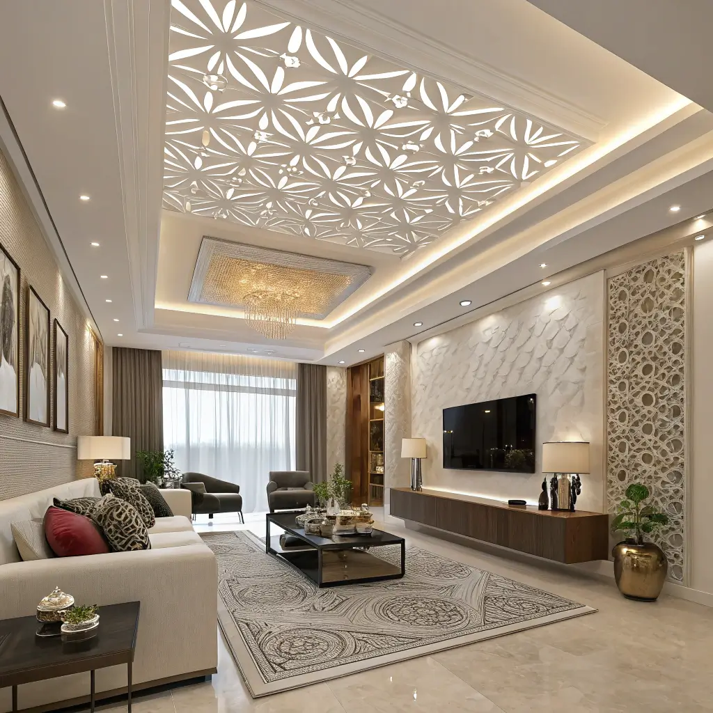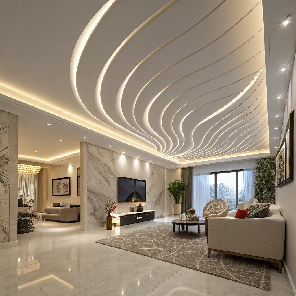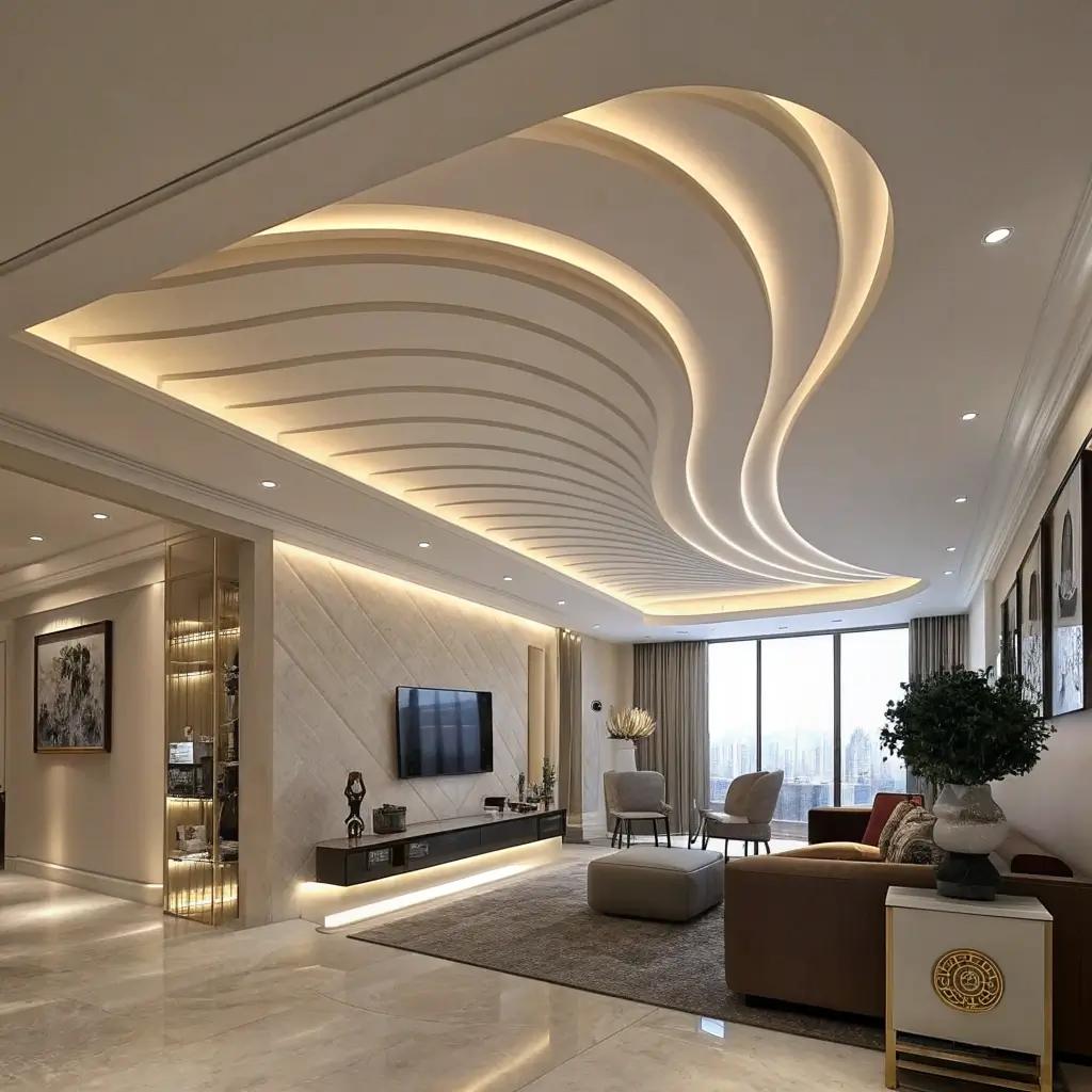 Curves are having a major moment in interior design, and ceilings are no exception. A curved false ceiling creates flowing, organic lines that soften the hard edges of a room and add incredible visual interest.