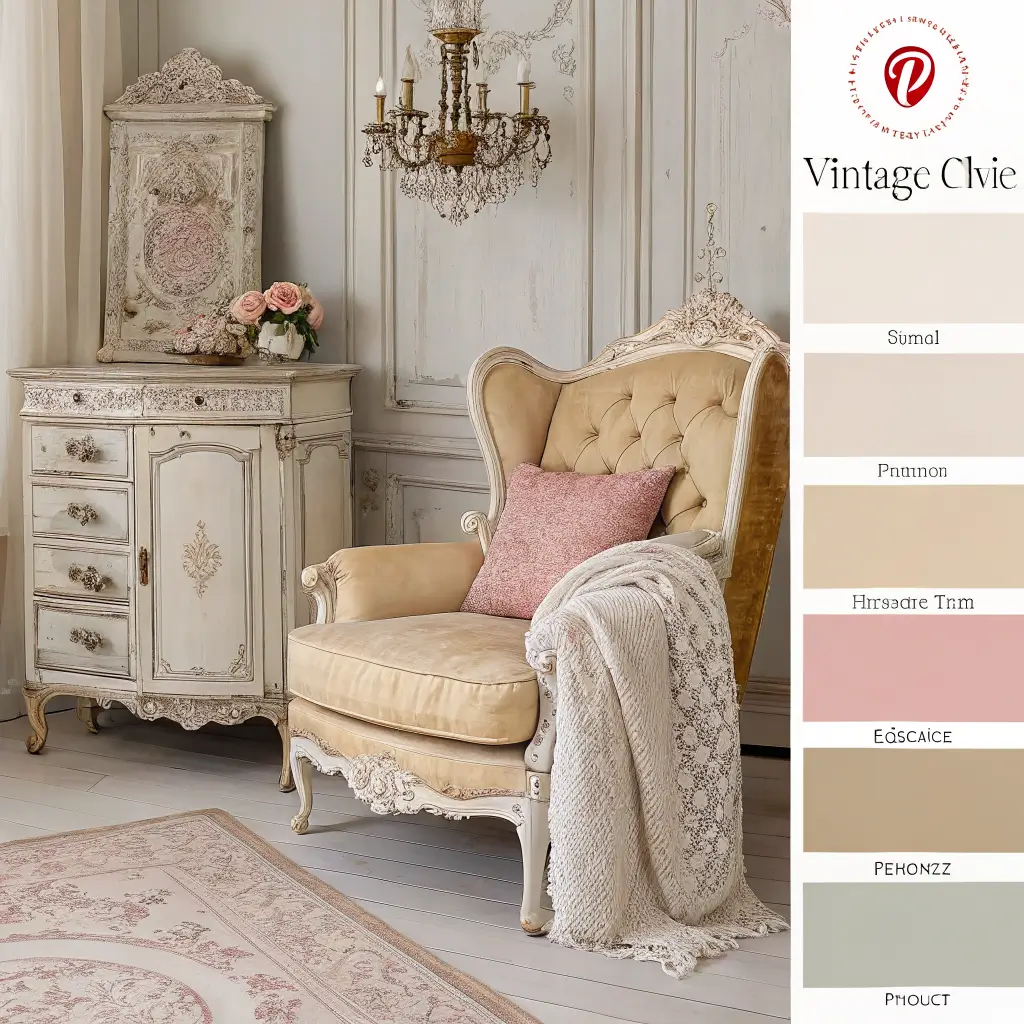 The era mixing creates richness. Victorian, Art Deco, Mid-Century, Regency – vintage chic borrows from multiple periods united by quality and elegance. Your mood board should show how pieces from different eras converse with each other.