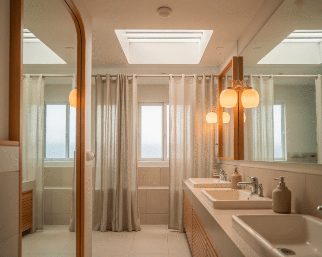 Avoid pure white unless you want your bathroom to feel like a hospital. Add warmth through wood tones and textiles rather than paint colors. The palette should whisper, not shout.