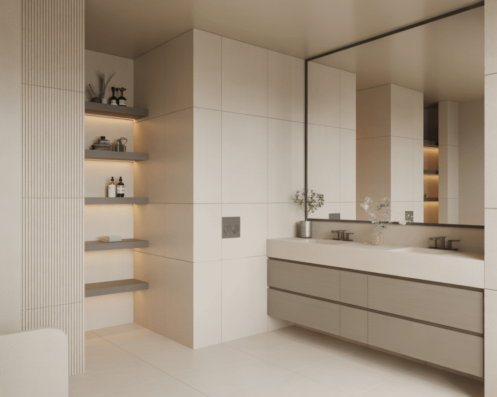 Clutter is the enemy of calm. Built-in niches, recessed medicine cabinets, and vanity drawers keep necessities hidden but accessible. I had my contractor create a recessed shelf in my shower wall – it holds everything I need without protruding into the space.