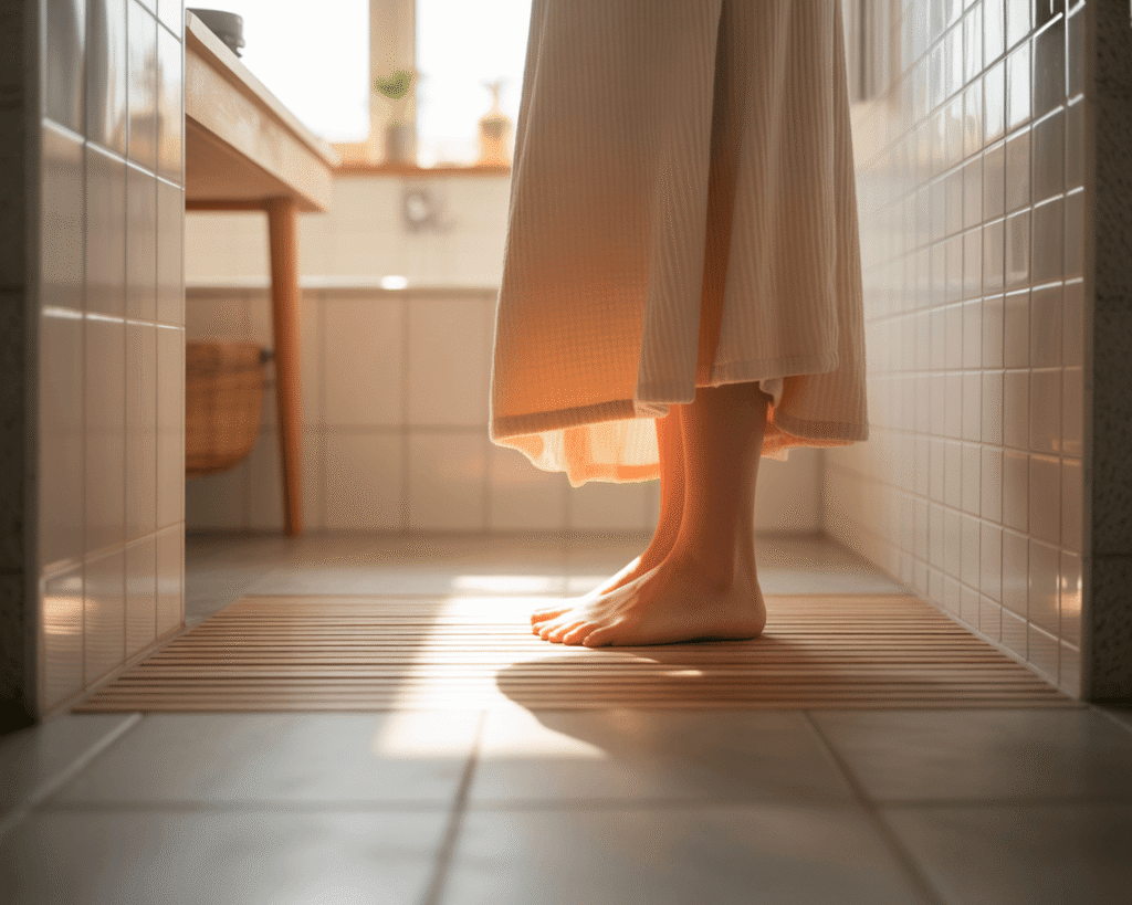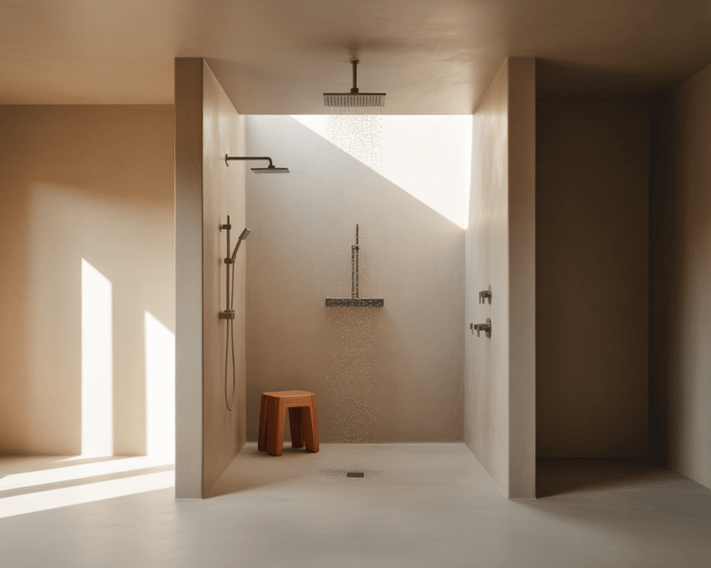 Consider a curbless entry if you’re doing a full renovation. The seamless transition from bathroom floor to shower floor creates incredible visual flow. Add a teak shower stool, and you’ve got yourself a proper wet room experience.