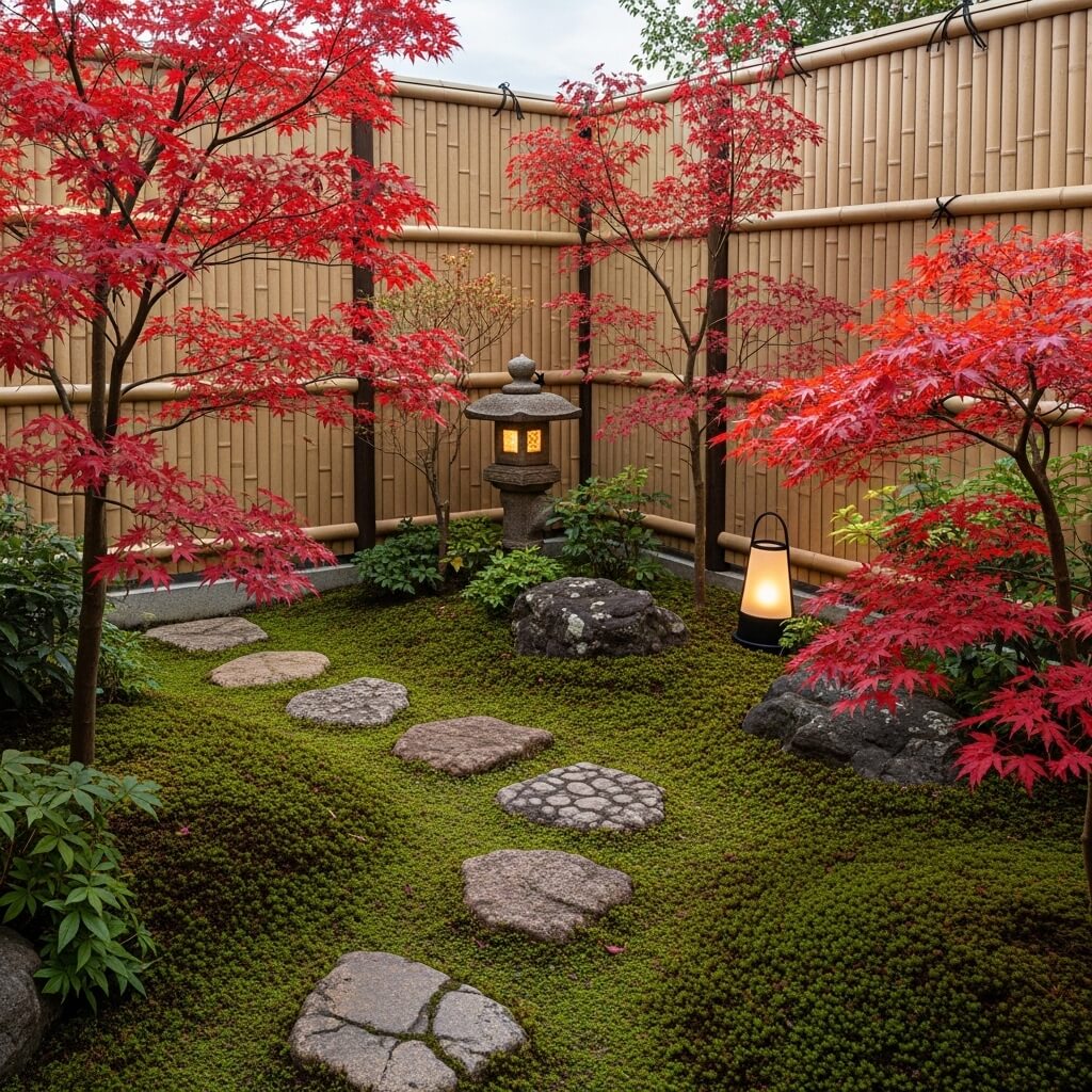 Small Courtyard Japanese Garden with Bamboo Fence