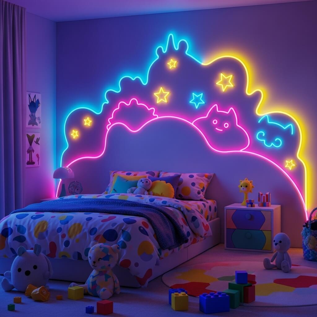 3. Cartoon Theme LED Glow Headboard Design