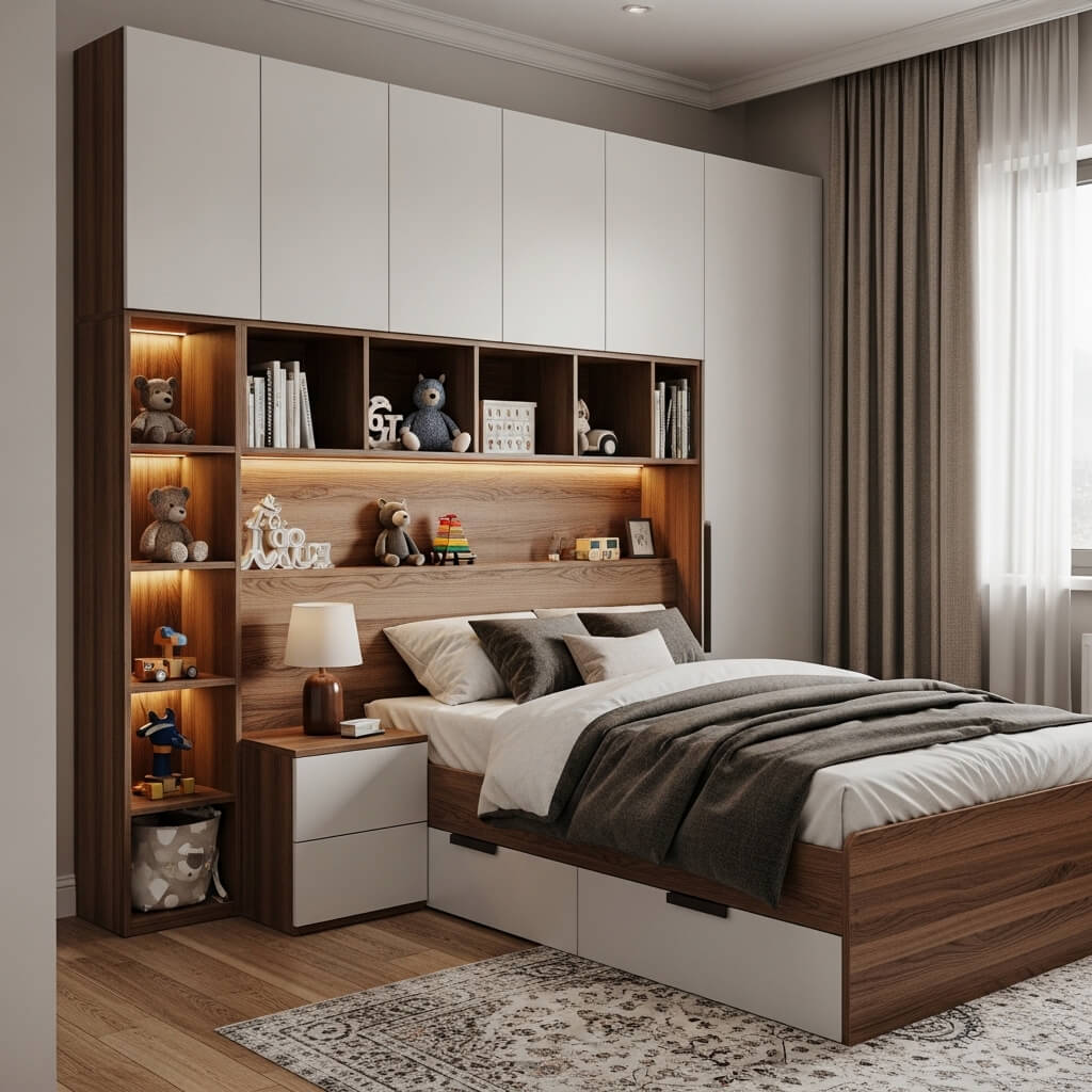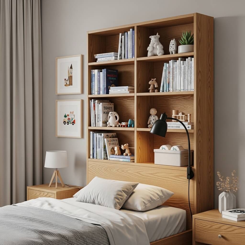 Let’s get real for a minute—kids come with STUFF. So much stuff! Books, toys, stuffed animals, random rocks they found at the park that are apparently “special”… it never ends. That’s why storage cubby headboards are practically a gift from the bedroom design gods.