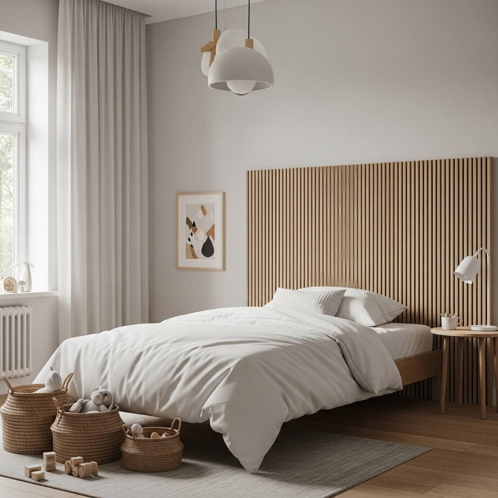 4. Minimal Wooden Slat Kids Headboard Design