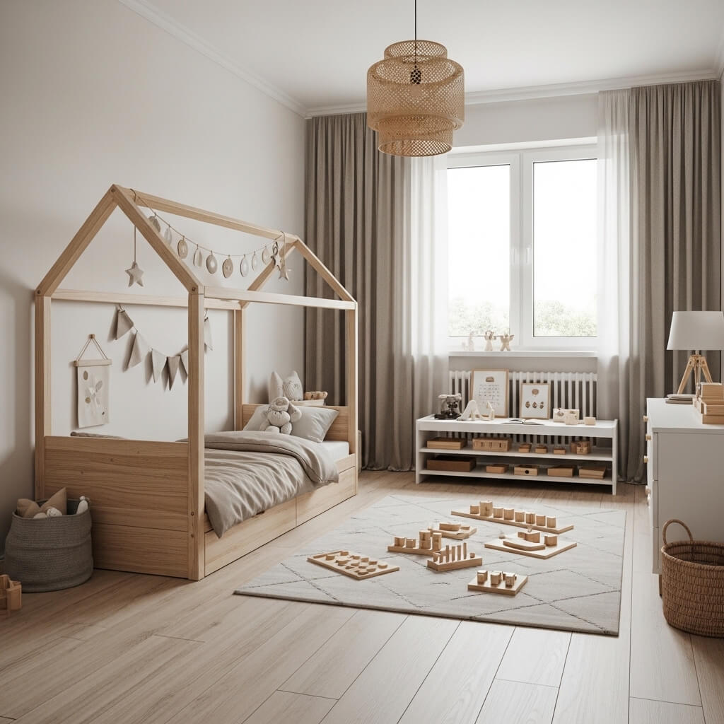 Natural wood tones create a warm, organic feel that connects children to nature—something increasingly important in our screen-dominated world. Pine, oak, and birch are popular choices, each bringing its unique grain pattern and character.