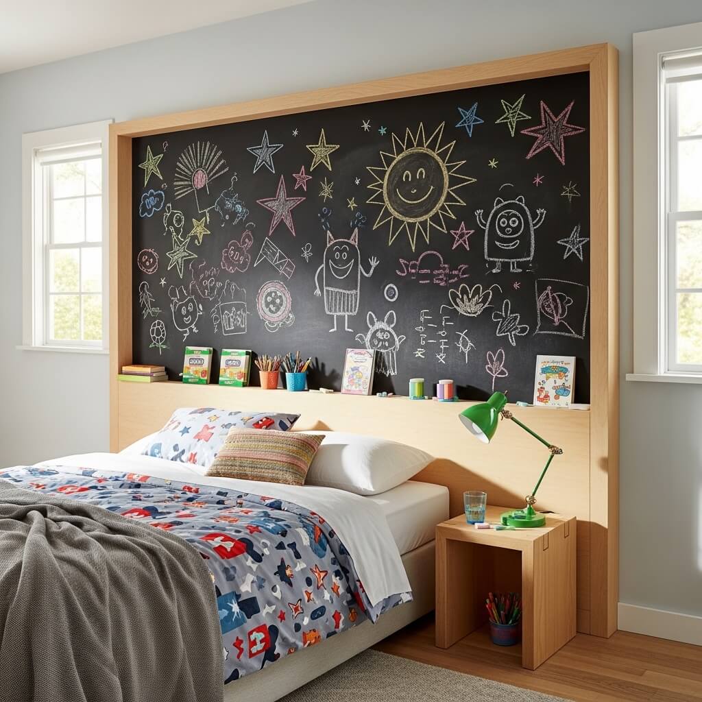 I’ve seen these used brilliantly in siblings’ rooms, where the chalkboard becomes a communication center for notes, games of tic-tac-toe, or counting down days to special events. It adds an interactive element that traditional headboards simply can’t match.