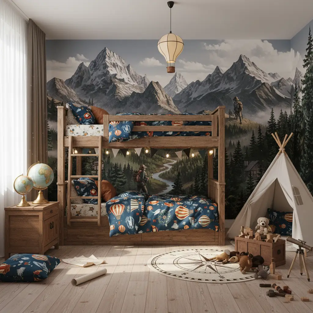 Boys and adventure go together like peanut butter and jelly, but cartoon pirates on every wall gets old fast. Modern adventure murals create immersive environments that grow with your kid. Think less “kiddie” and more “National Geographic explorer”.