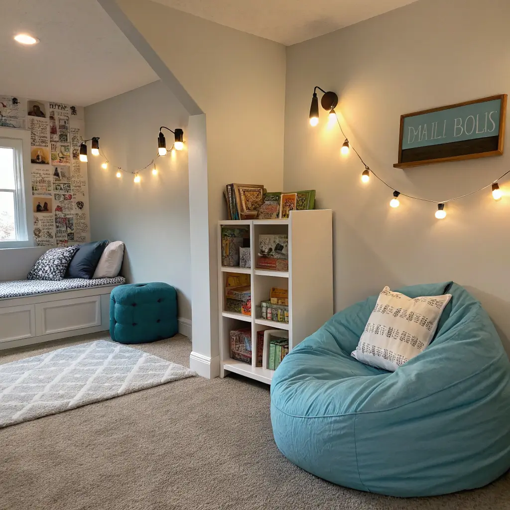 Even the most energetic boys need a calm spot to decompress. A reading nook gives them permission to chill without seeming “uncool.” The key is making it cozy but not babyish.