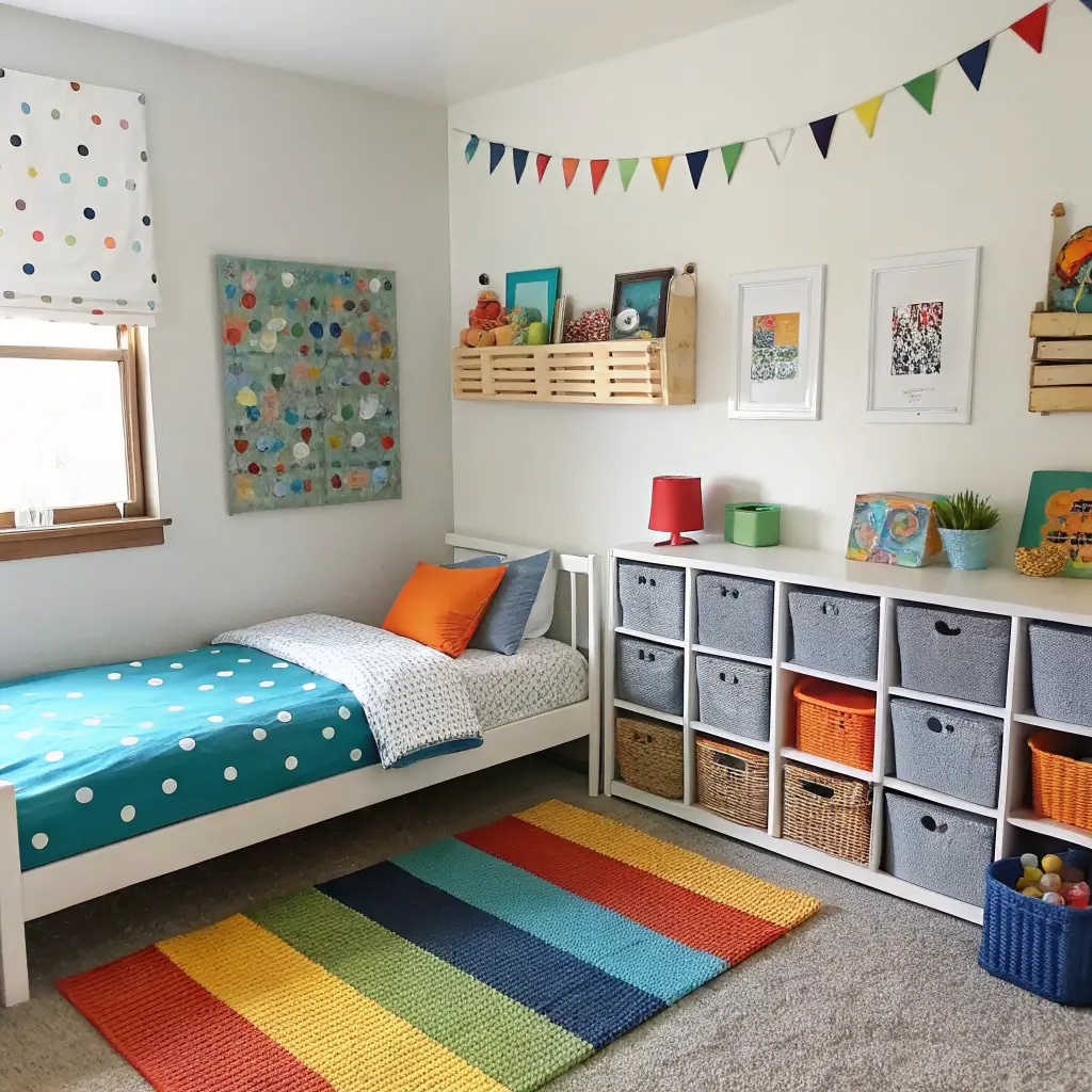 Start with one major change and build from there. Maybe it’s a loft bed that frees up floor space, or perhaps it’s organizing chaos with colorful storage.