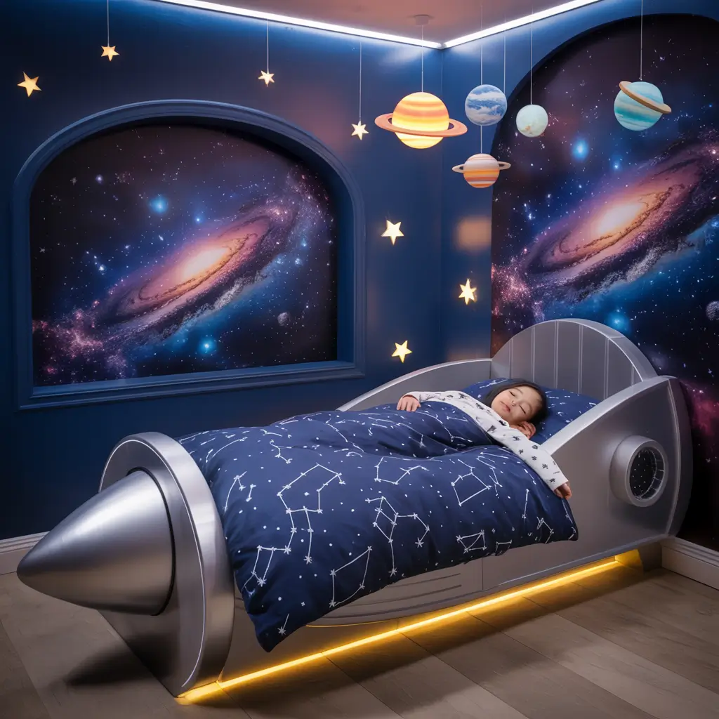 Ever met a kid who doesn’t dream about space? Me neither. Creating a space-themed bedroom turns bedtime into an adventure, and trust me, anything that makes bedtime easier deserves a Nobel Prize.