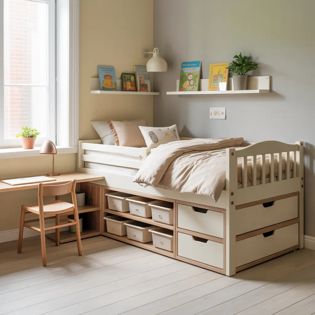 Small bedroom? Welcome to the club. Space-saving furniture isn’t just smart – it’s essential for maintaining sanity in compact kids’ rooms.