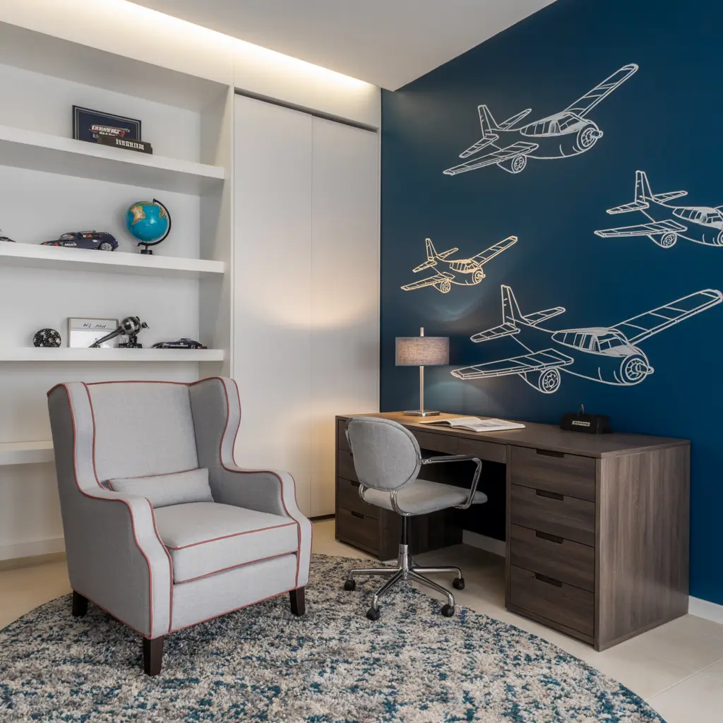 Modern Boys Bedroom with Bold Blue Accents