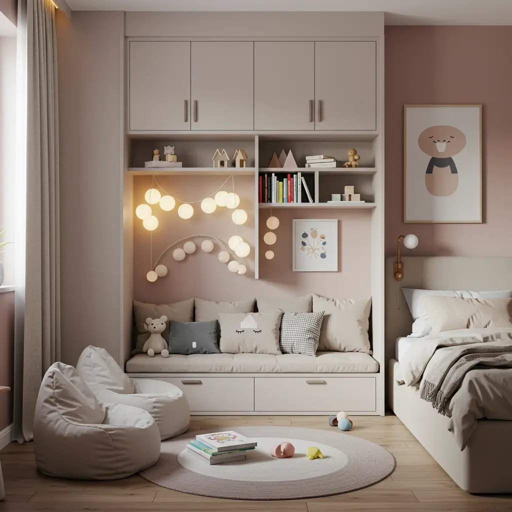 Vertical thinking saves small rooms. Loft beds with desks underneath, wall-mounted shelves to the ceiling, over-door organizers – every inch counts. My kids share a 10×12 room that functions better than many larger spaces because we maximized every vertical opportunity.