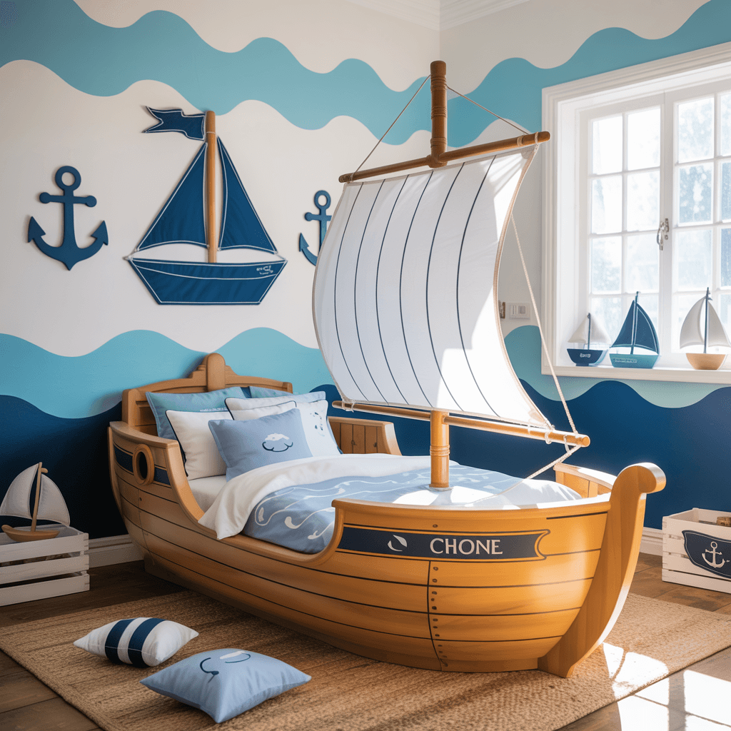 Nautical ocean adventure rooms bring coastal vibes inland while tapping into kids’ endless fascination with what lurks beneath the waves. From pirate adventures to marine biology, ocean themes offer depth (pun intended) that grows with children.