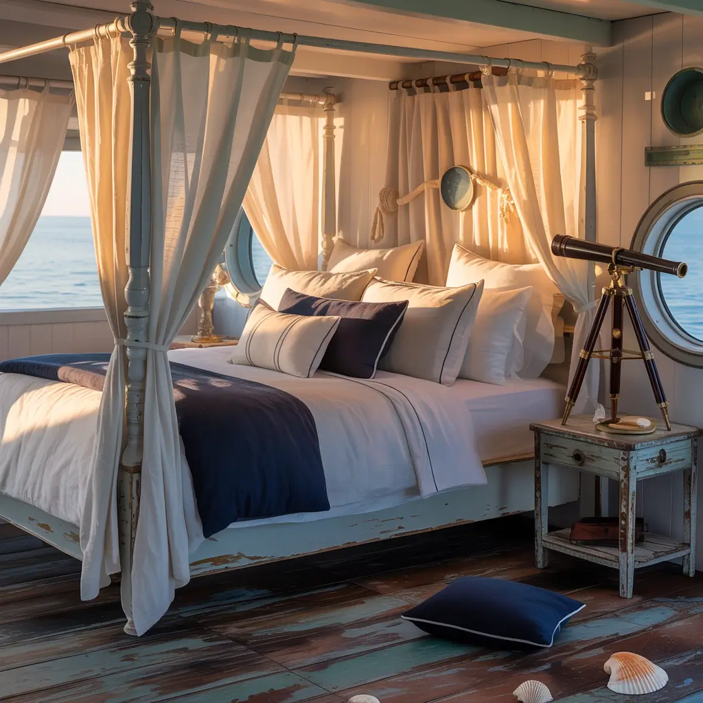 Maritime elements add authenticity. Rope details, ship wheel accents, porthole mirrors, anchor motifs – these create nautical atmosphere through details rather than overwhelming themes. One client’s ocean room uses actual salvaged boat parts as decor. Overkill? Perhaps. Amazing? Definitely.