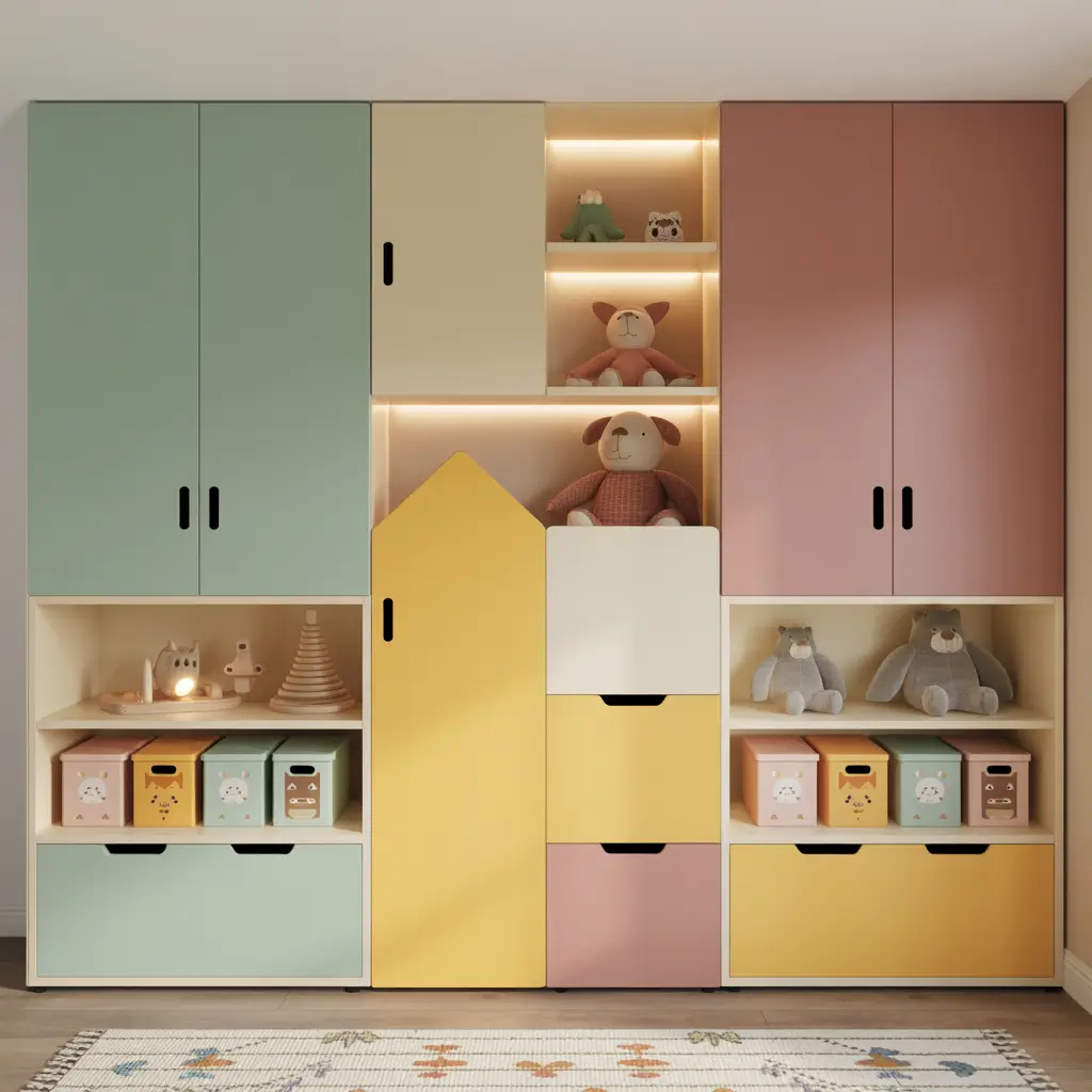 Focus the theme on door fronts and handles. Keep the interior relatively neutral so it doesn’t clash with their clothes. And always, always leave room for them to add their own touches—kids love feeling like they’ve contributed to the design.