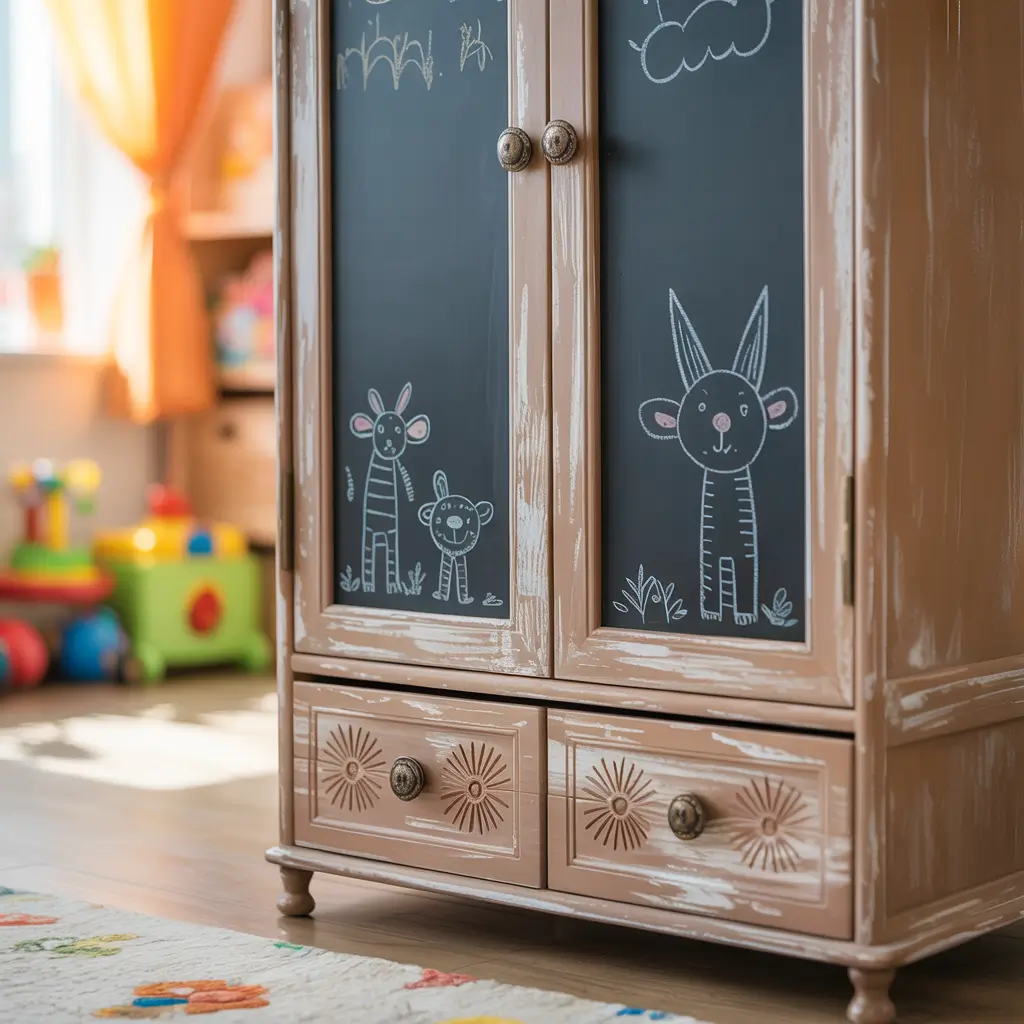 Here’s where I learned my lesson the hard way: kids’ interests change faster than you can say “Baby Shark.” Don’t paint characters directly on the wardrobe unless you want to repaint in six months when they’ve moved on to the next obsession.