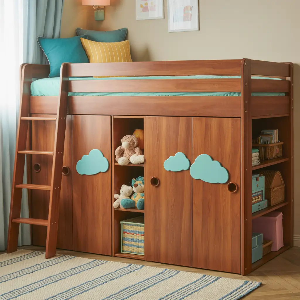 I installed one of these in my son’s tiny room, and suddenly we had space for a reading nook underneath. The wardrobe sits flush against the bed structure, creating this cool fort-like feel that kids absolutely love.