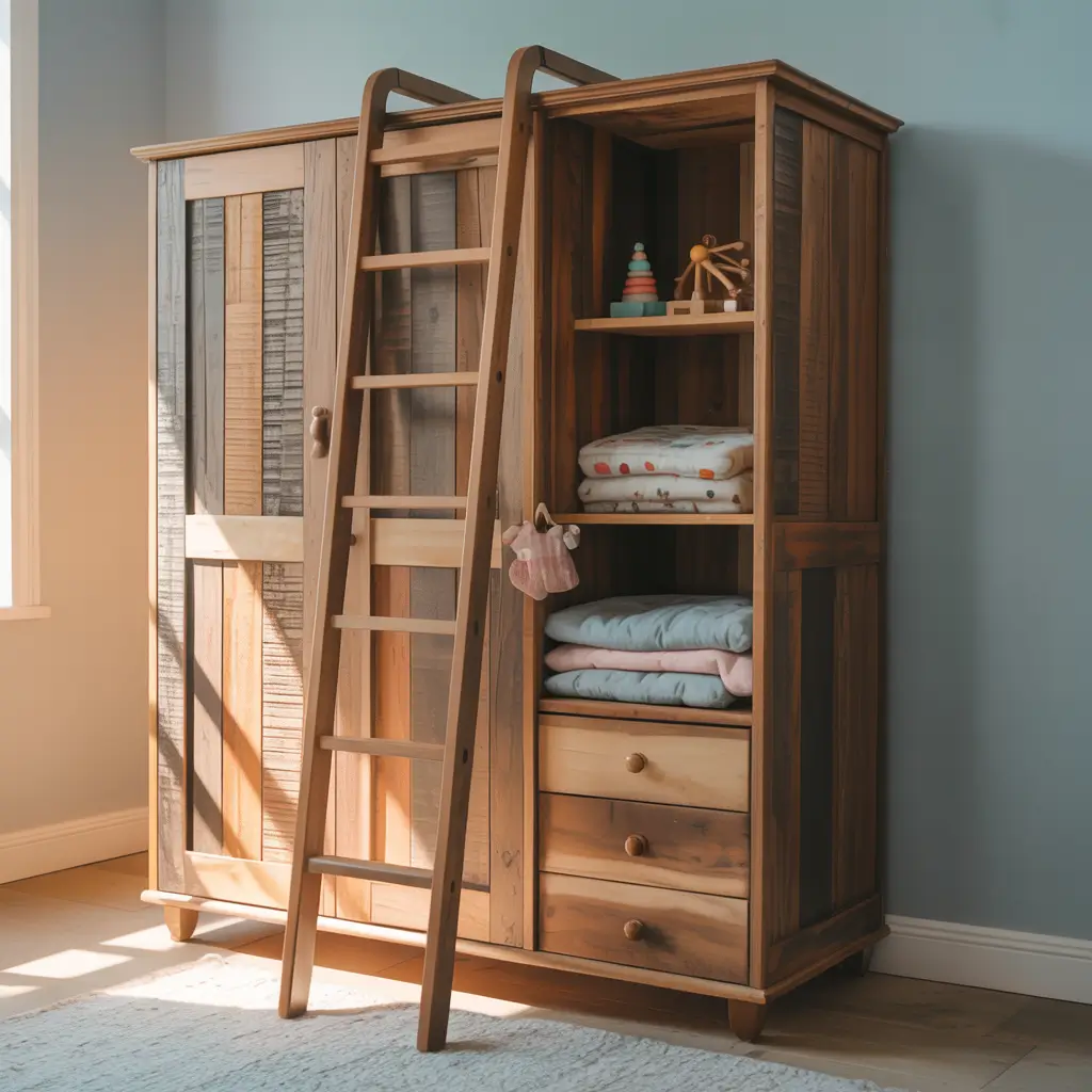 You know those gorgeous library ladders that make you feel like Belle in Beauty and the Beast? Now imagine that, but for your kid’s wardrobe. It’s functional, it’s fun, and it makes reaching high shelves an adventure instead of a struggle.