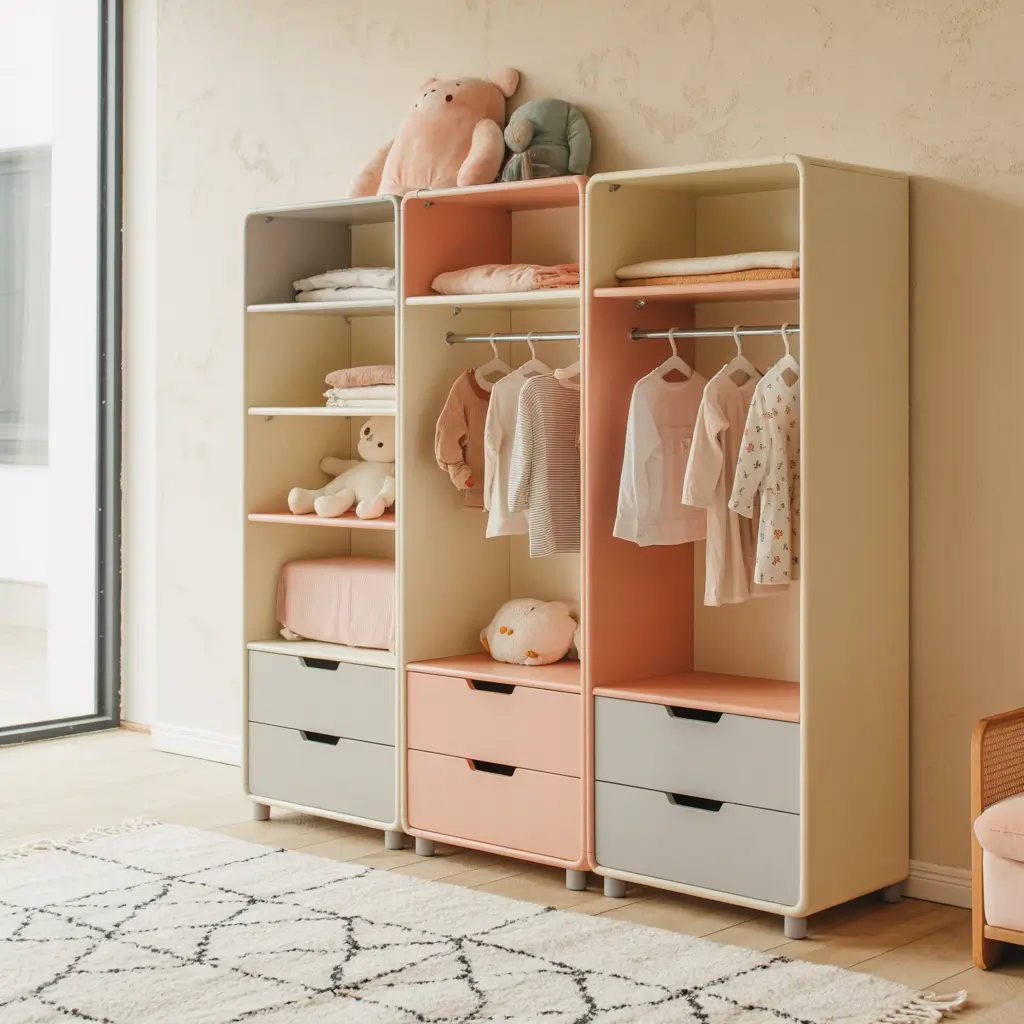 The beauty lies in flexibility. Need more hanging space this month? Add a rod module. Suddenly drowning in board books? Swap in some shelf units. Kids grow ridiculously fast (seriously, where does all that food go?), and modular systems grow right along with them.