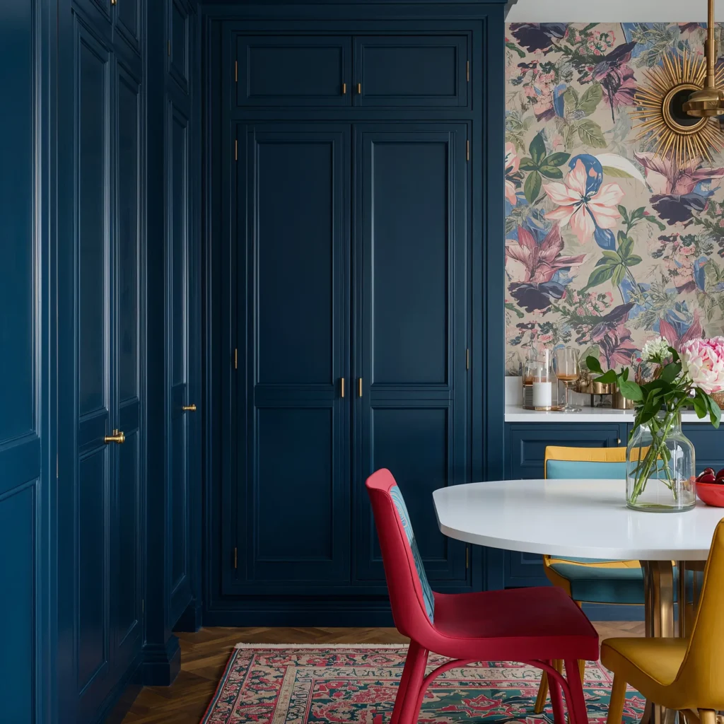 Picture a 1950s dinette set paired with contemporary pendant lights. Or vintage glass-front cabinets housing your modern dishware collection. It’s eclectic without being chaotic.