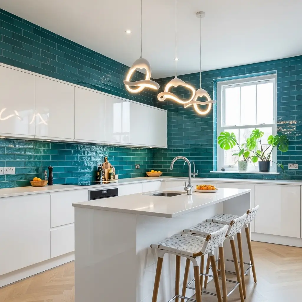 My cousin installed iridescent glass tiles that shift from blue to green depending on the light. Against her white cabinets, it creates this magical, mermaid-like effect that’s absolutely mesmerizing.
