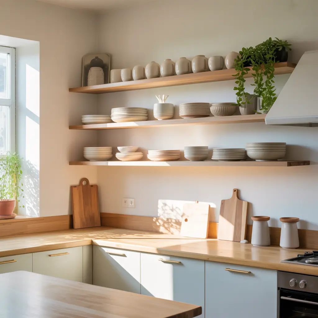 Small kitchens and bulky upper cabinets go together like oil and water – they just don’t mix. I learned this living in a 500-square-foot apartment where my upper cabinets made the kitchen feel like a narrow hallway. Switching to minimalist floating shelves opened up the space so much that visitors thought I’d knocked down a wall.