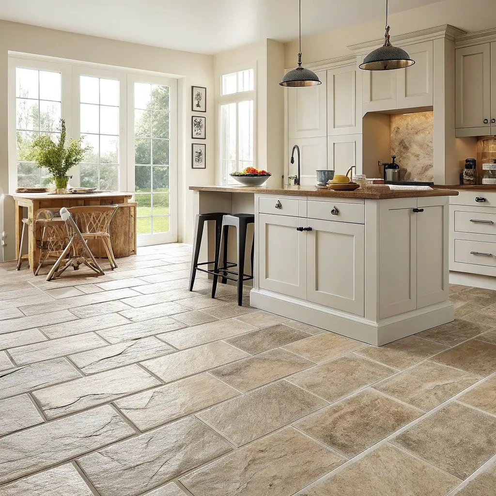 1. Matte Porcelain Stone-Look Kitchen Floor Tiles