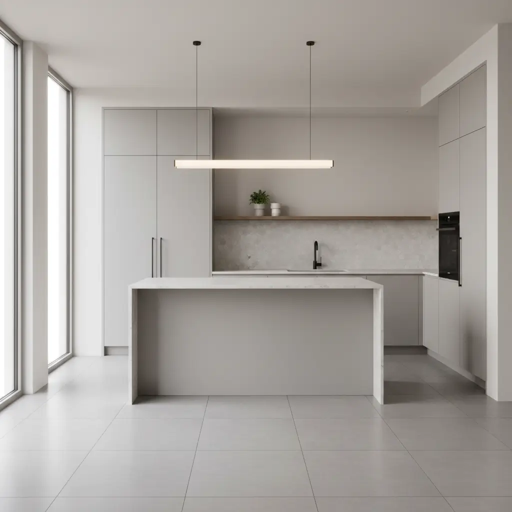 Neutral doesn’t mean boring—it means smart. Greys, warm whites, and soft beiges create foundations that work with any design style and won’t clash when you inevitably repaint your cabinets in three years.