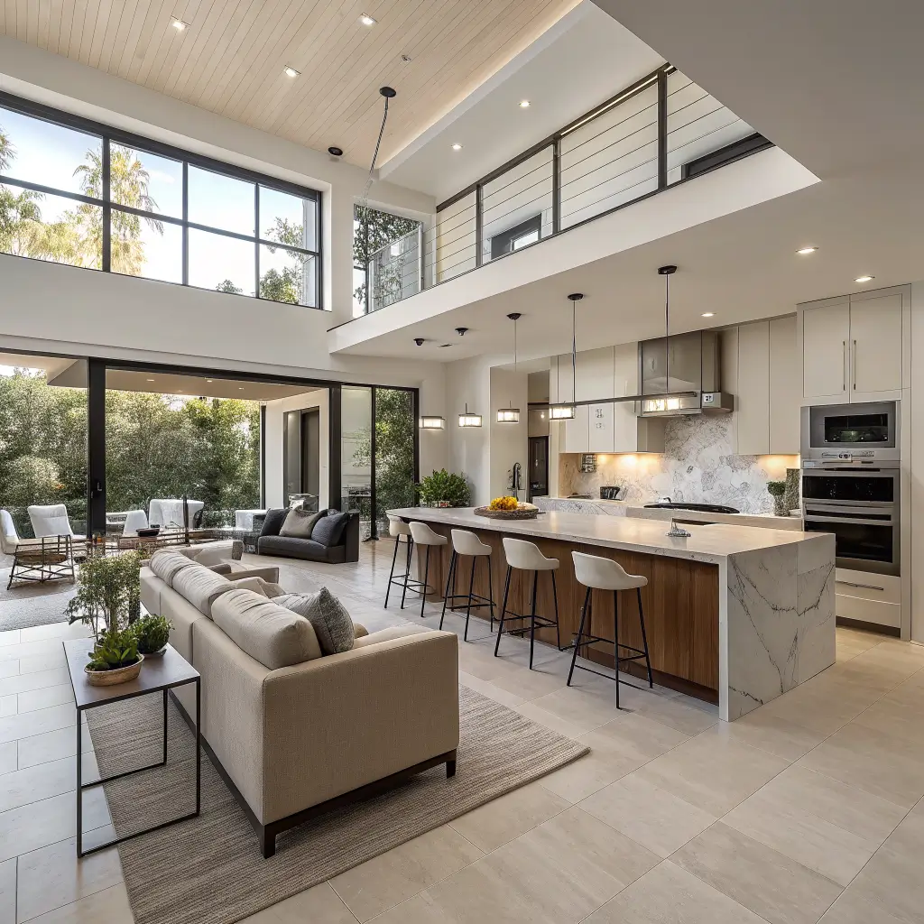 The challenge with open concepts is defining zones without walls. Your kitchen needs to flow into living spaces while maintaining its own identity. I use my island as a natural divider – kitchen on one side, living space on the other. Different flooring can also create subtle boundaries without breaking the open feel.
