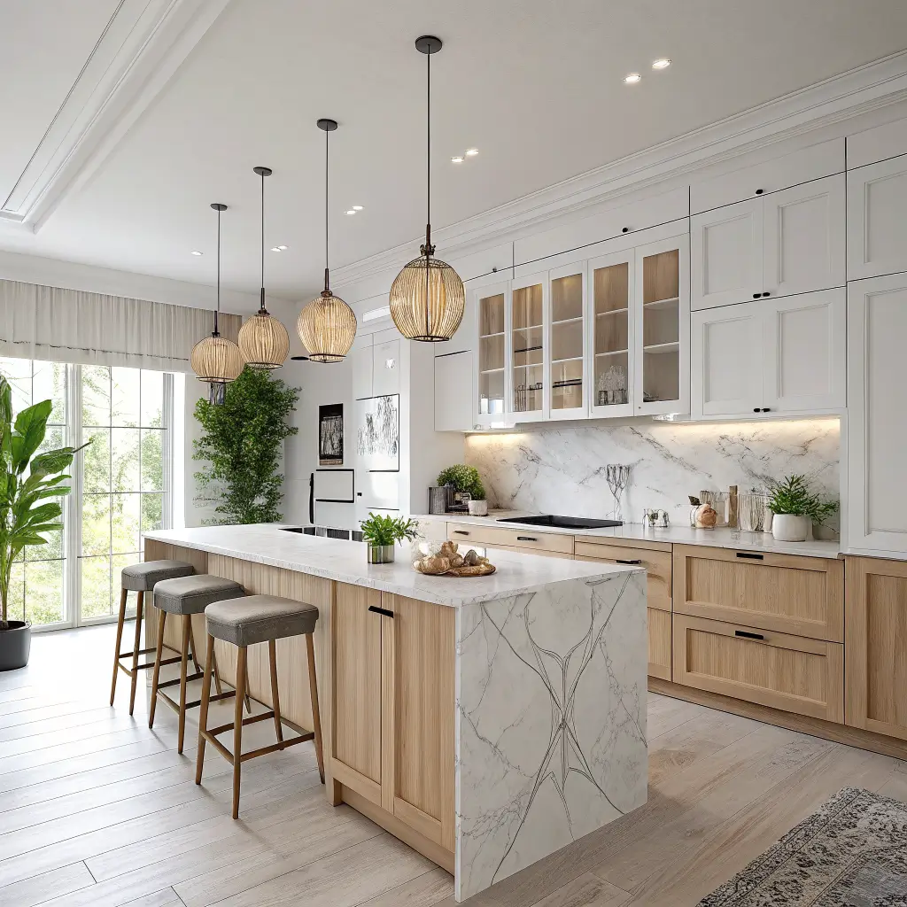 The color palette sets the foundation. Whites, soft grays, and natural wood tones dominate, but it’s not boring. The warmth comes from texture – rough wood grain, smooth ceramics, soft textiles. My Scandi-inspired kitchen uses three shades of white plus oak, and visitors always comment on how calming it feels.