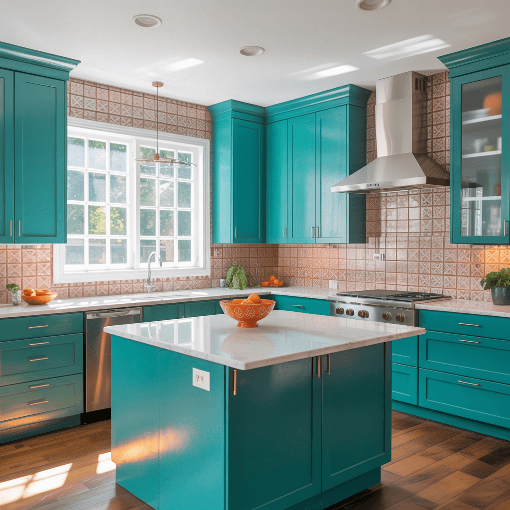 The color strategy determines success or chaos. Choose one bold color and commit, or go complementary with two that play nice together. My kitchen features deep emerald green lower cabinets with white uppers and brass accents. Bold but not overwhelming – that’s the sweet spot.