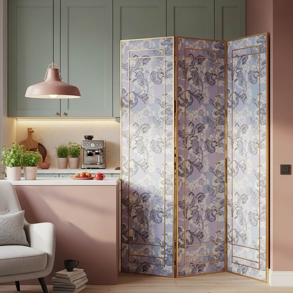 Want flexibility with zero construction? Folding screens are your friend. I know what you’re thinking—aren’t those just decorative room dividers from home goods stores? Yes, but also no. The right folding screen can absolutely function as a kitchen partition while adding serious style points.