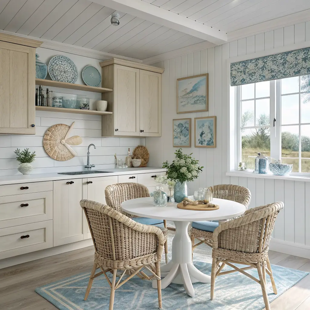 8. Bright Coastal Kitchen with Breakfast Dining Corner