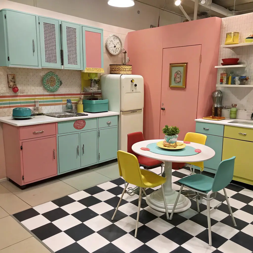 Vintage retro kitchens with colorful dining spaces celebrate personality and nostalgia. These bold designs reject beige and embrace joy through color and pattern.